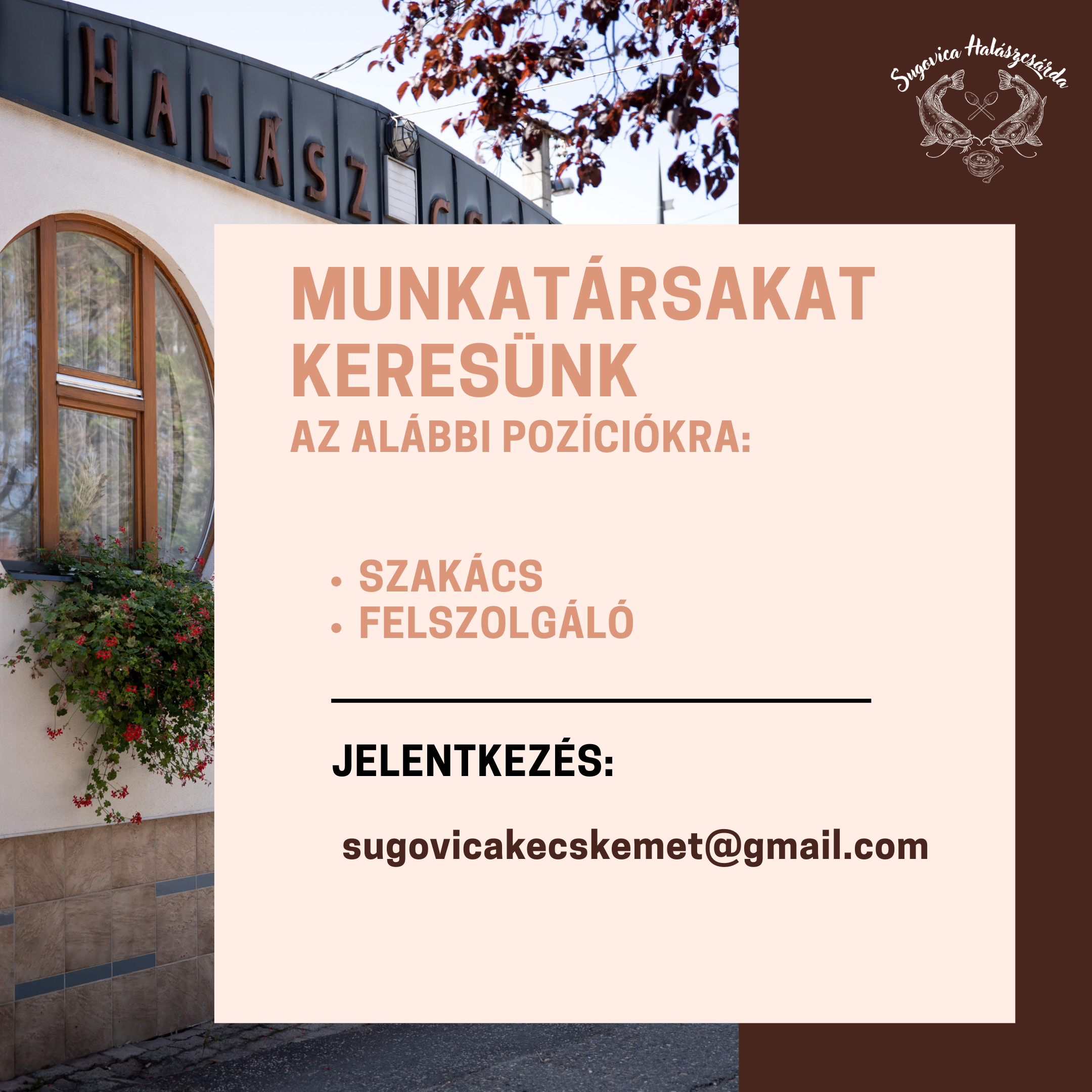 "Két fiatal házaspár vállalta fel, hogy újra megnyitja a Sugovica Halászcsárdát, amely Kecskemét különleges étterme, hiszen kitűnő halételekkel várta egykor és várja újra a vendégeket. A hagyományos vendéglátásra, az ételek kiváló minőségére garancia a halászcsárdát 26 évvel ezelőtt megnyitó Pápics János, aki mintegy menedzserként segíti a fiatalokat.